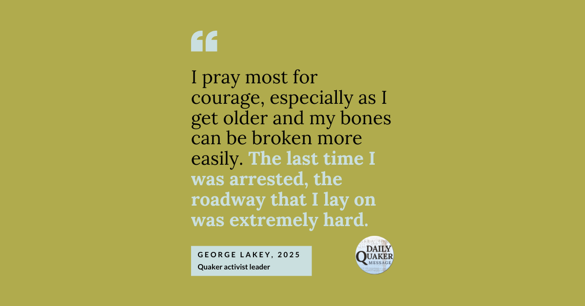 “I pray most for courage, especially as I get older and my bones can be broken more easily. The last time I was arrested, the roadway that I lay on was extremely hard, and I didn’t know what the police… might have in their minds.